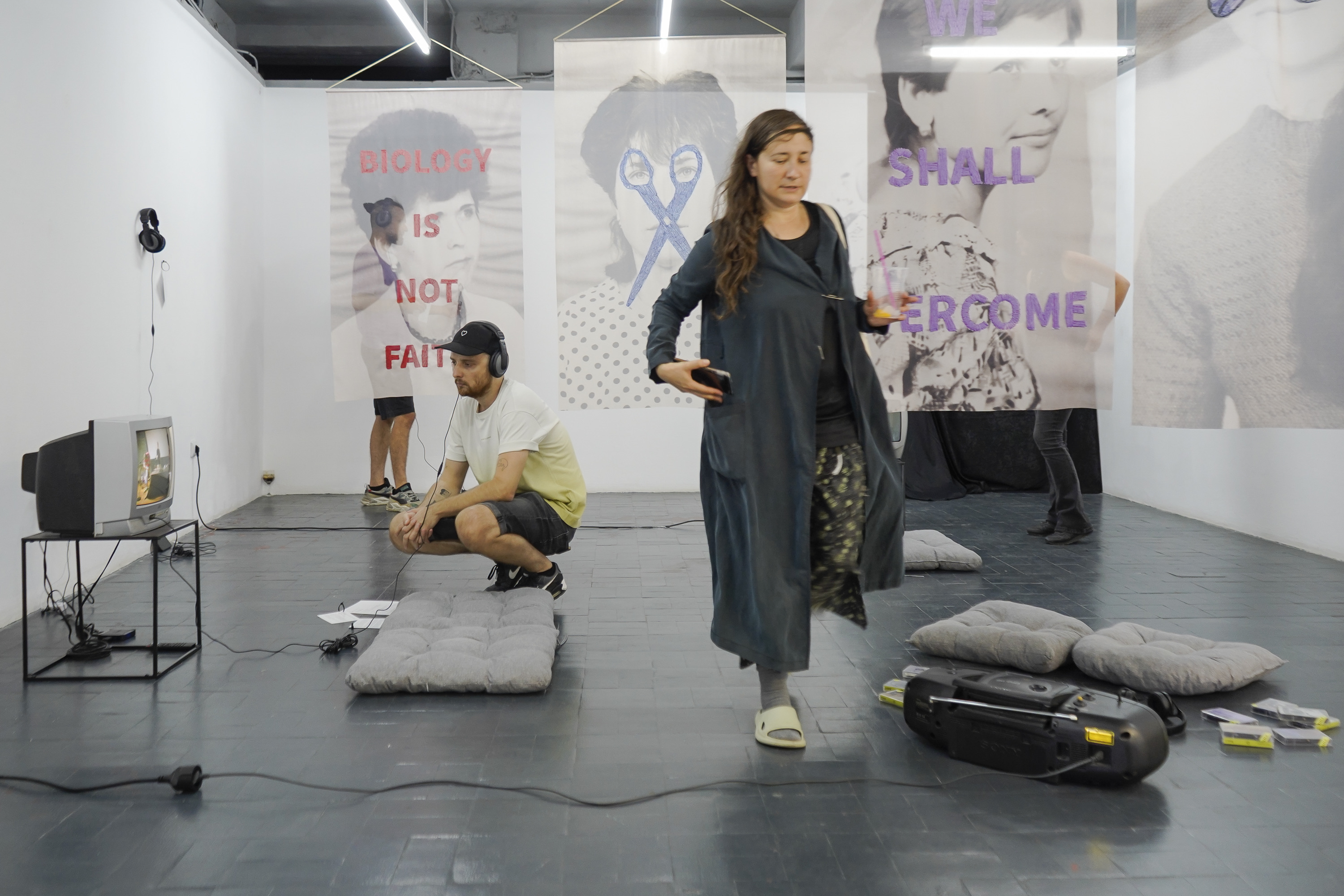 During the installation's circulation, two invited artists—Lăcră Grozăvescu (working with textiles, photography, and family archives) and Cătălina Gubandru (who engages with body, text, and objects in participatory configurations) responded to the sound pieces arriving from the network. They developed new or acted upon existing projects inspired by the audio material. In this way, the project remained true to its original impulse: associative connectivity.