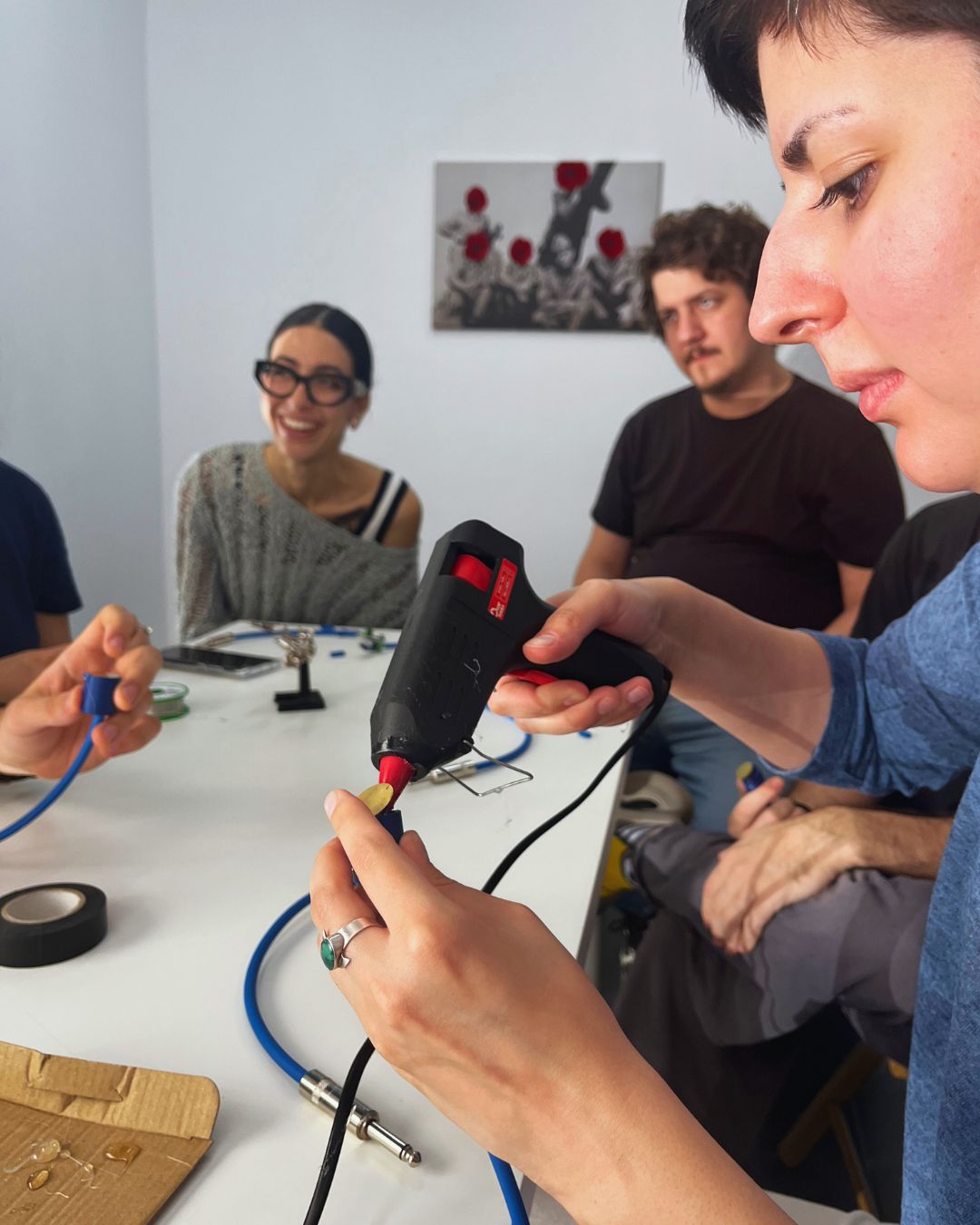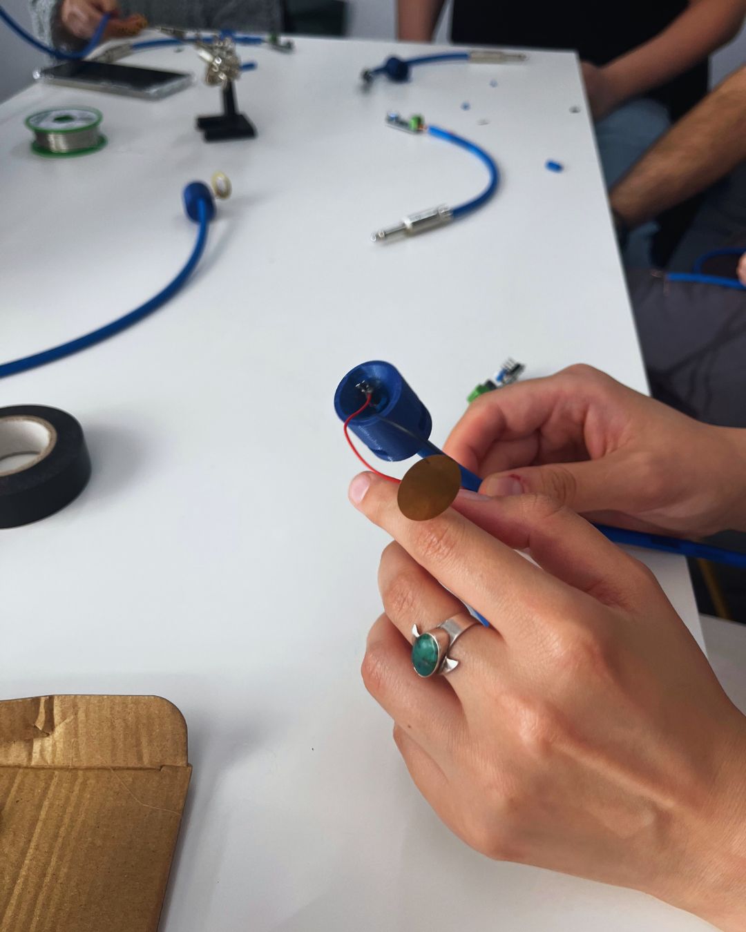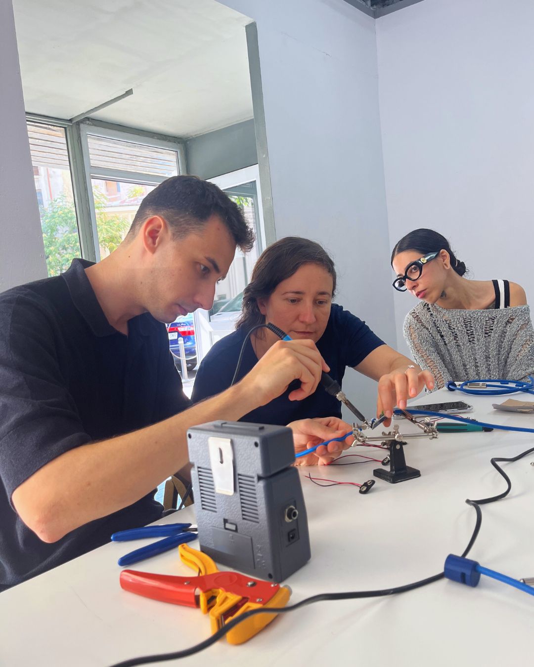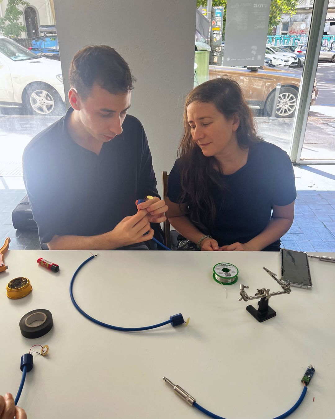 During the session, participants learned about the principles and potential of contact microphones, exploring how these devices can capture vibrations and sonic textures usually imperceptible to the human ear. Guided by Denis, each participant built their own microphone from scratch, experimenting freely with materials and forms, and testing their creations in real-time. The workshop encouraged play and curiosity — participants recorded, listened, and interacted with the surrounding environment, uncovering unexpected acoustic details in ordinary objects. The session concluded with a collaborative sound experiment, where individual recordings were brought together into a collective composition using Ableton Live.